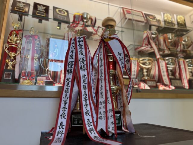 トロフィーが倍に 2025年9月23日 / 部活動 / By 校長 先日の北見地区バドミントン選手権大会で、一旦返還したトロフィーが、今年2個になって戻ってきました。長野・齊藤さんのダブルス優勝、そして長野さんのシングルス決勝でリードされてからの逆転で勝ち取った連覇、おめでとうございます。(校長)