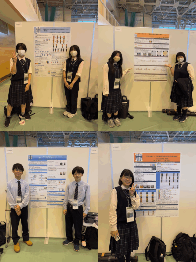 日本分析化学会(https://www.jsac.jp/)第74年会 高校生ポスター部門で、本校の4つの発表すべてに「優