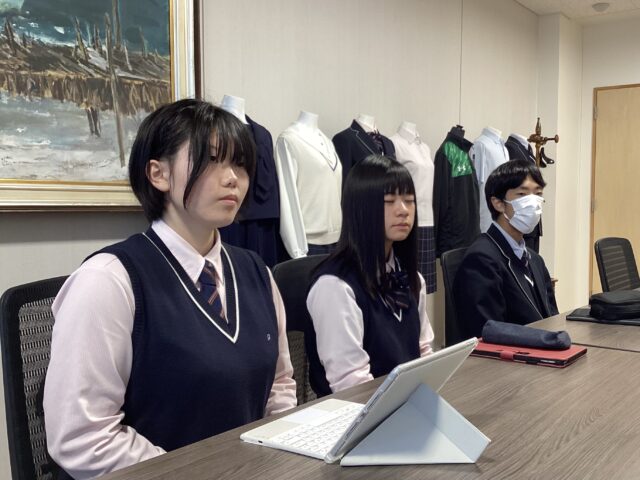 先日、連携協定を締結した日本赤十字北海道看護大学の尾山とし子特任教授と、三楽町西部町内会の名達和俊副会長をお迎えし、藤波会(生徒会)の生徒たちと、高大連携による防災・減災・微災に関する学習機会の創出について協議いたしました。