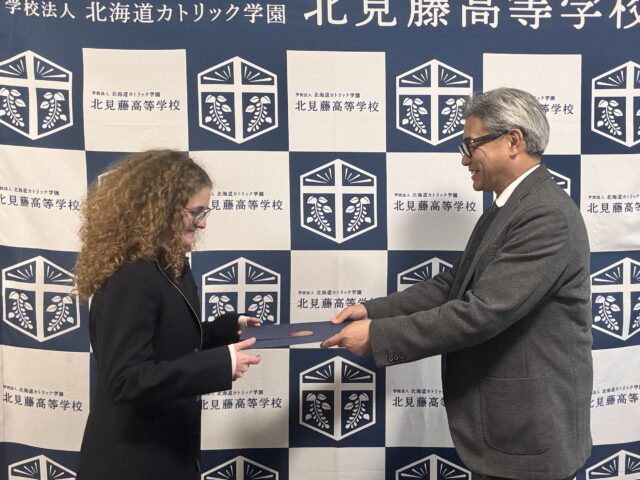 NEWサニ、またね 2025年11月2日 / News, フジコウの魅力 / By 校長 ブルガリアからの短期留学生、サニさんは、3週間の滞在期間を終え本校での学びを終えました。最終日には、校長室にて修了証明書が授与されたり、クラスメイトからは送別会が開かれたりと、盛大な一日となりました。(校長)