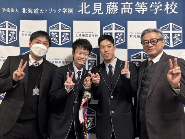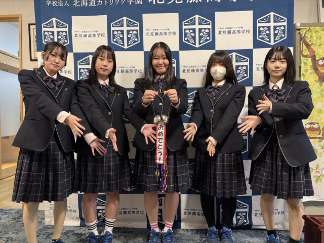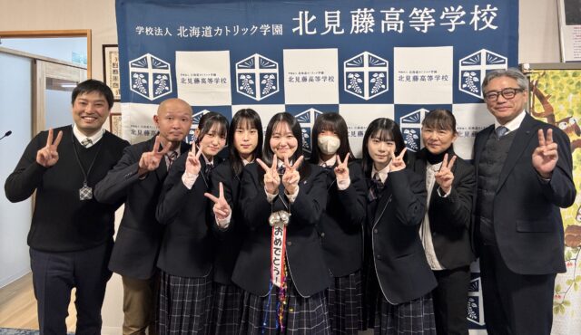 オホーツク社会福祉専門学校に校長推薦で合格した女子生徒たちと、日本赤十字北海道看護大学に合格した男子生徒たちが、合格の報告に来てくれました。