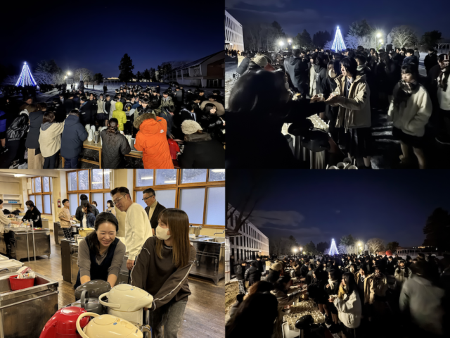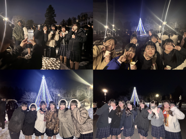 PTAの皆さんが提供してくれたココアなどの温かい飲み物を飲みながら、生徒たちが楽しんでいる様子をご覧ください。(校長)