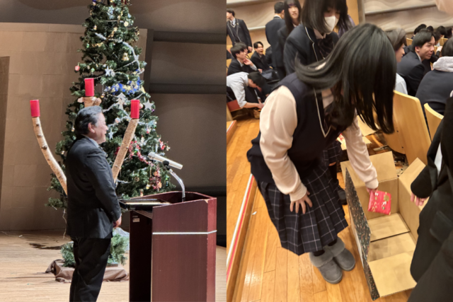 生徒の皆さん、悪天候でリハーサルもままならない中、本当にお疲れ様でした。良いクリスマス会でしたね。(校長)
