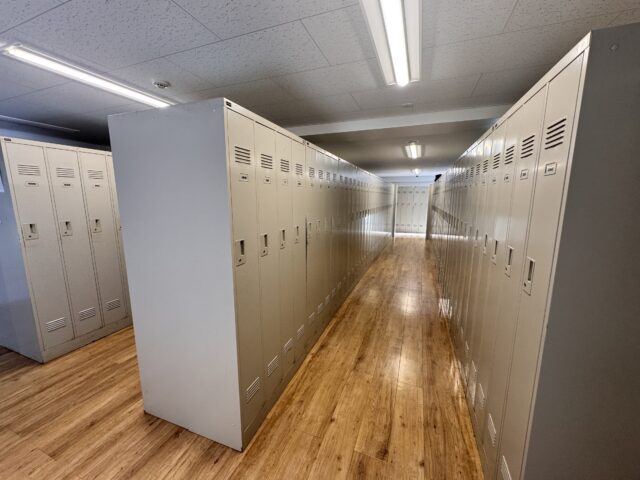 右側の扉を開けると、一人一台割り当てられる鍵付きのロッカーがあります。