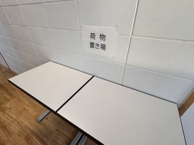 控室から会場には荷物を全て持って移動します。会場前に荷物置場がありますので、お使いください。