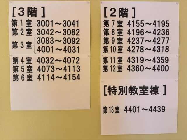 北見会場として、本校のみで500名以上の受験生にご来場いただく予定であり、受験会場は13教室を確保しております。