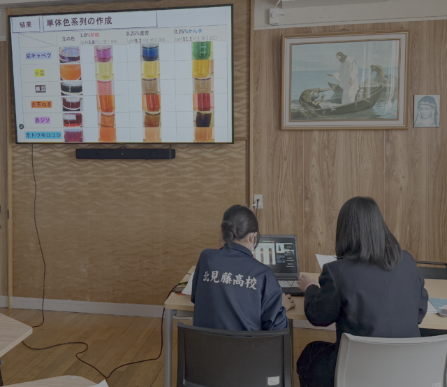 優秀賞「万能指示薬による試験管の中の虹色作成について-第4報-」平林香恩、八巻星奈