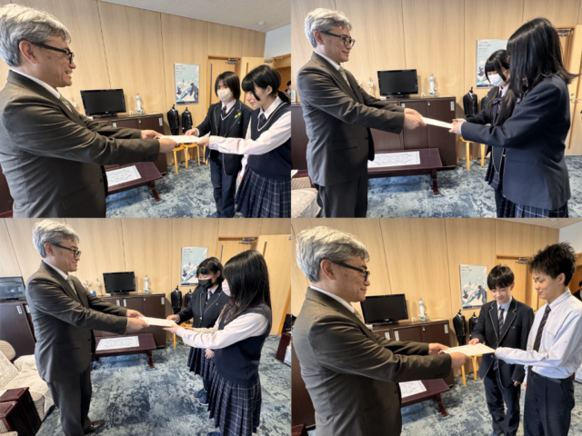 NEW研究の成果 2026年3月22日 / News, 部活動 / By 校長 公益社団法人化学工学会から表彰を受けた科学部の生徒たちに、届いた奨励賞の賞状を授与しました。おめでとう!頑張ったね。(校長)