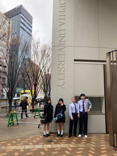 高大連携事業の一環として、1年生2名と2年生2名が、上智大学へキャンパスツアーに伺いました。高等学校DX加速化推進事業(DXハイスクール)の一環として実施されたものです。