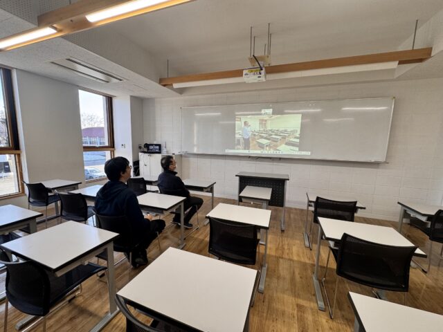 教室の様子が見えるように、保護者控室には各教室の様子が、音声付きの動画で写し出されています。