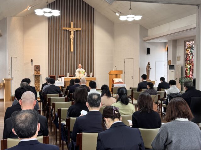 NEW祝福を受けて 2026年4月2日 / News, 学校行事 / By 校長 「宗教講話」として、教職員が北見カトリック教会に伺って、新学期のためのミサを受けました。ミサの最後に全教職員がチャプレンの上杉神父様から祝福を受け、新学期に向けて意気が向上しました。(校長)