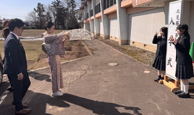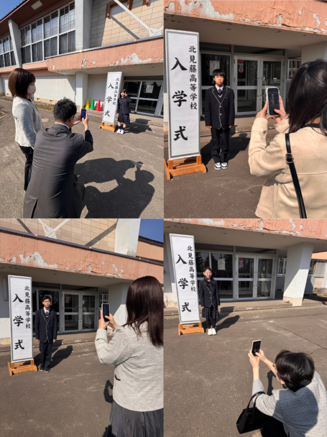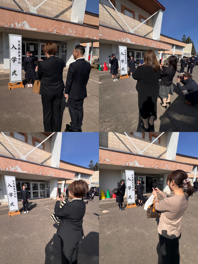 後になって気づいたのですが、「入学式」の立て看板の背後が建物の劣化した部分でした。