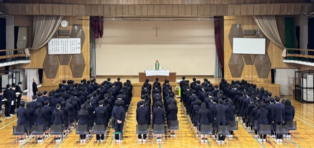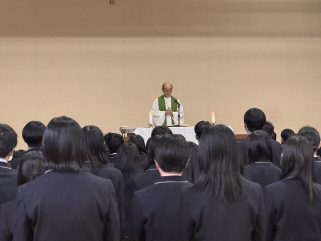 NEW祈りに包まれて 2026年4月14日 / News, 学校行事 / By 校長 チャプレンの上杉神父様に、入学を祝福する「ミサ」を行なっていただきました。一年生にとって初めてのカトリックの行事でしたが、感謝と祝福の祈りを捧げ、希望を胸に新たな学校生活への第一歩を踏み出すことが出来ました。(校長)