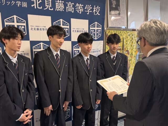 さっそく校長室で当時の様子を伺い、勇気と優しさのある行動に対して、学校から「表彰状」を贈らせてもらいました。(校長)