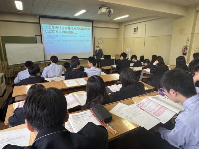 NEW来たるべき時のために 2026年4月28日 / News, 学校行事 / By 校長 日本学生支援機構の奨学金説明会を行いました。進学希望者のうち100名程度の生徒が2日に分かれて説明を受けました。進路が一段と身近に感じられてきましたね、頑張れ3年生!(校長)