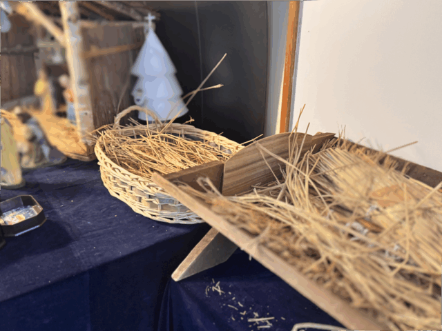 キリストが誕生した時に寝かせられていたとされる「飼い葉桶」ですが、北見藤では「良い行い」をした時に藁を一掴み入れてもらっています。