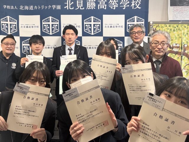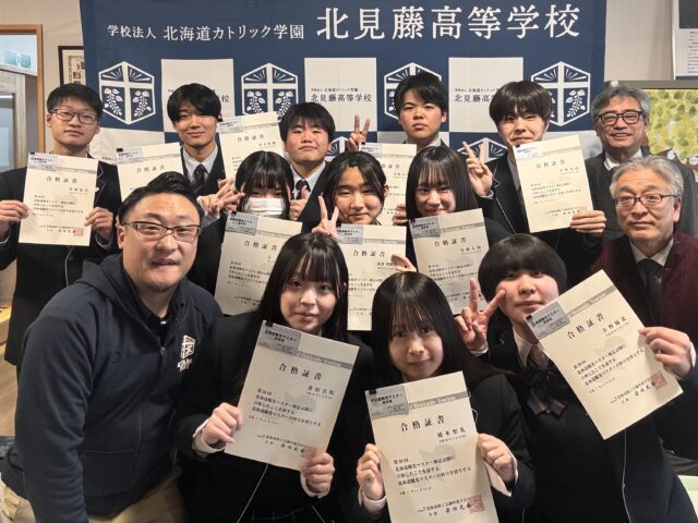 今回の検定は全道各地から10代から70代以上までの798名が受験し、全体の合格率は64.5%、10代では65.9%と難関の試験でしたが、本校の合格率は73.3%と大きく上回る結果となりました。