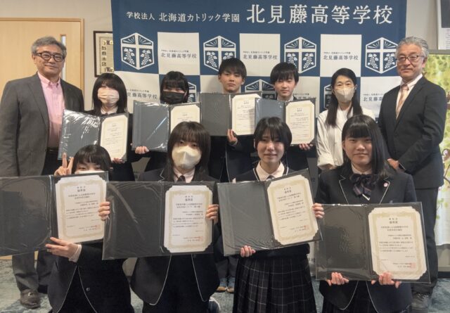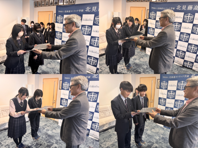 第23回高校生シンポジウムで受賞した8名に、学会から届いた賞状をお渡ししました。